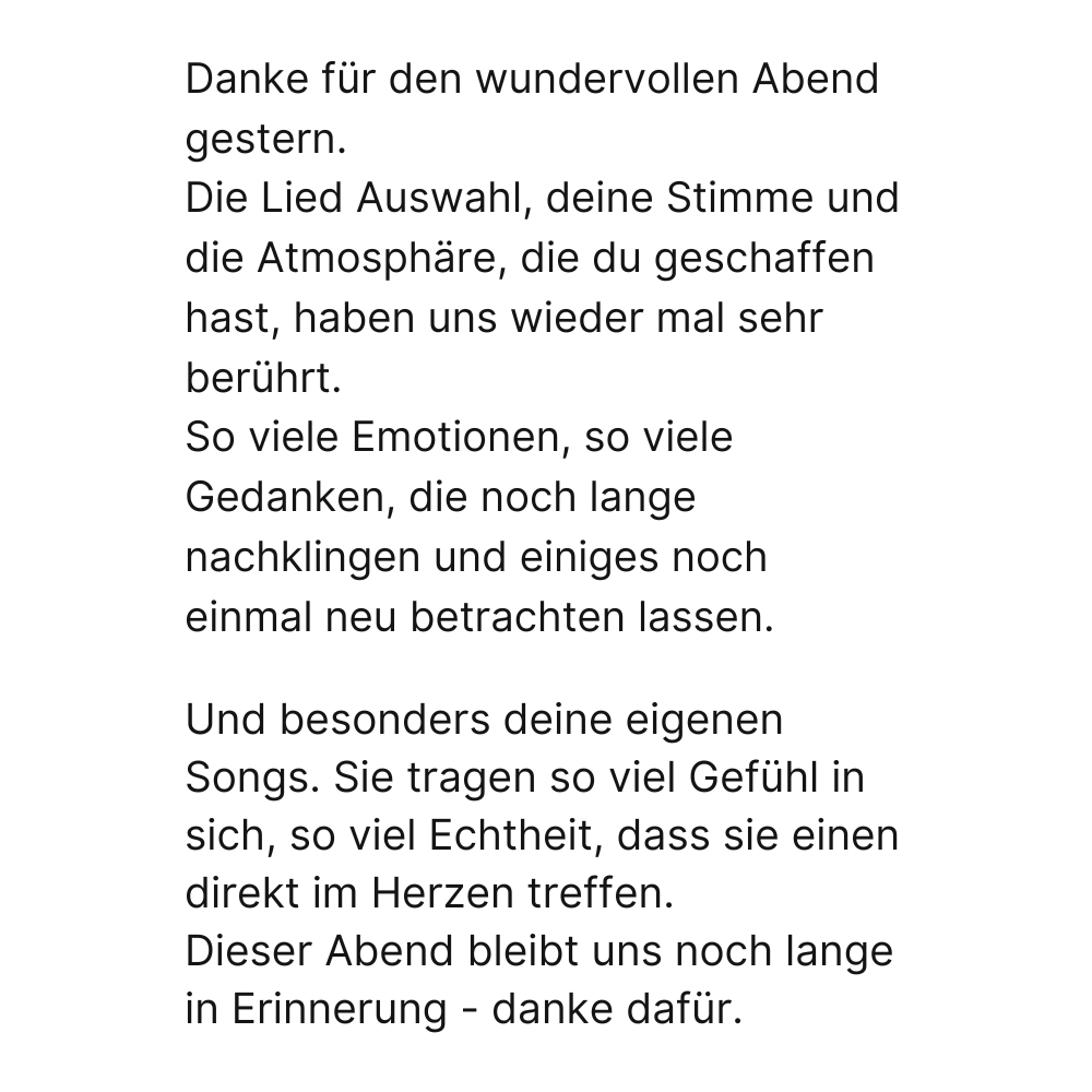 Du hörst Texte mit tiefsinnigen Botschaften und auch Fragen,